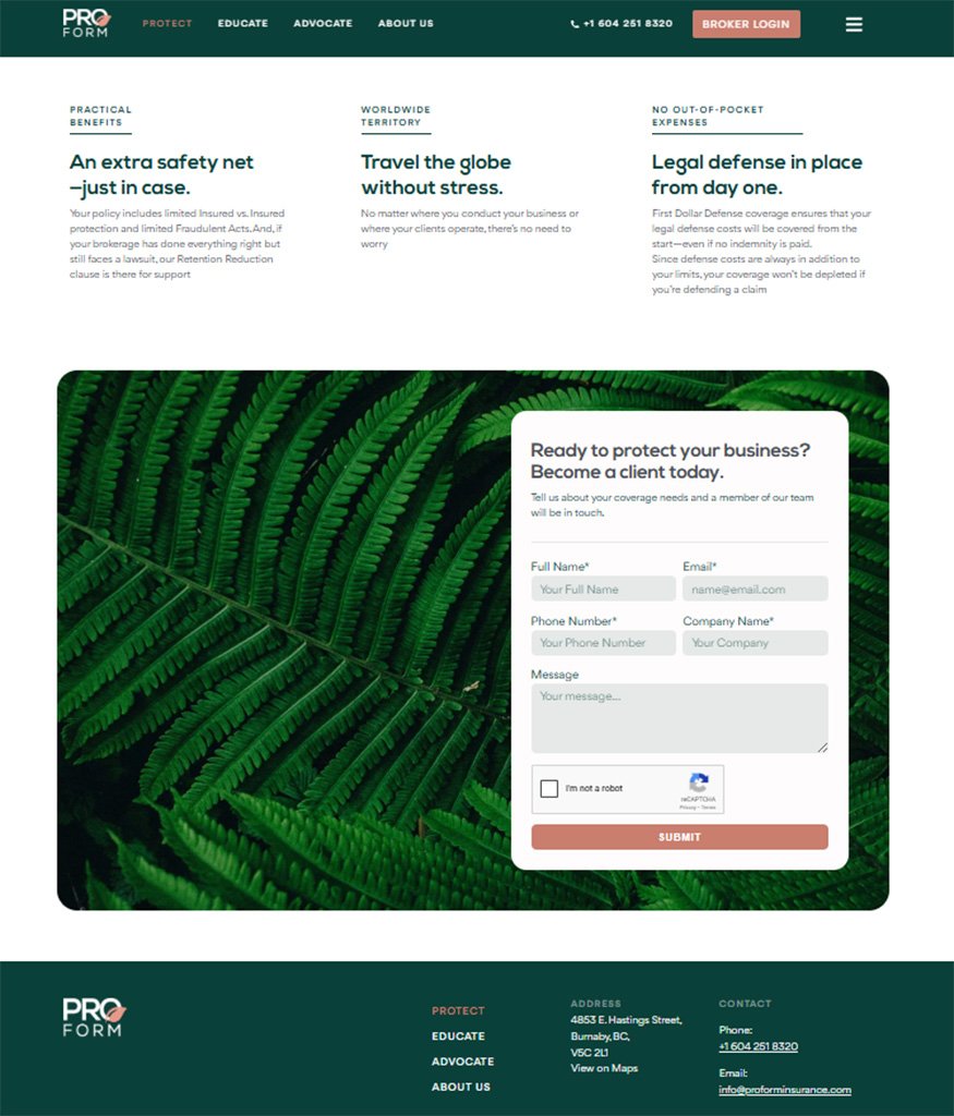 This 31 year old company allowed us to re-brand and re-launch to help brokers with errors and emissions insurance. The team at Proform was invaluable in creating the design and working with us on content and layout for this Wordpress/WP Engine site.